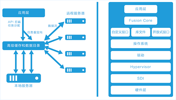 Matrix Fusion強(qiáng)大的靈活性來源于Fusion Core計(jì)算虛擬化引擎。Fusion Core控制應(yīng)用和基礎(chǔ)GPU計(jì)算之間的API調(diào)用指示,允許GPU負(fù)載靈活分布于本地GPU內(nèi)存、網(wǎng)絡(luò)附加GPU、擴(kuò)展至高達(dá)64個(gè)GPU,提供強(qiáng)大的整體性能。