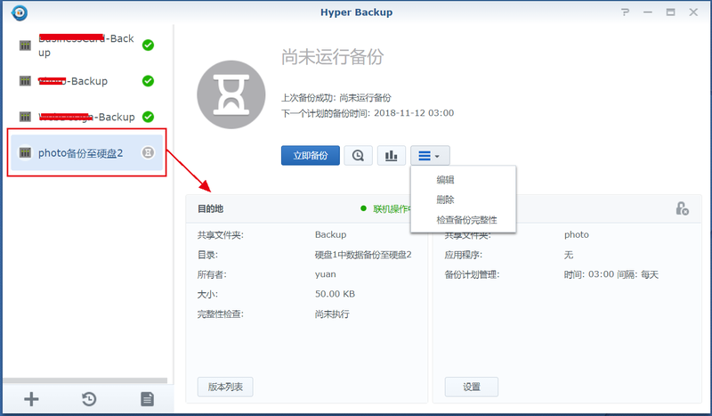 數(shù)據(jù)備份任務(wù):Synology、文件服務(wù)器;